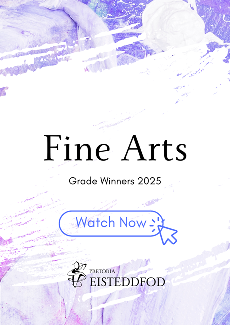 Pretoria Eisteddfod celebrated 100 years of existence in 2023 and is one of the largest Eisteddfods of its kind in the country. It was originally known as the Pretoria Music Festival and in 1993 it was expanded to also include Drama and Fine Arts. Since 2024 the drama section is presented as a separate entity. For practical reasons participation in Fine Arts is offered online which provides the opportunity for nationwide participation. The winners’ works are presented in a virtual art exhibition on the Eisteddfod website.